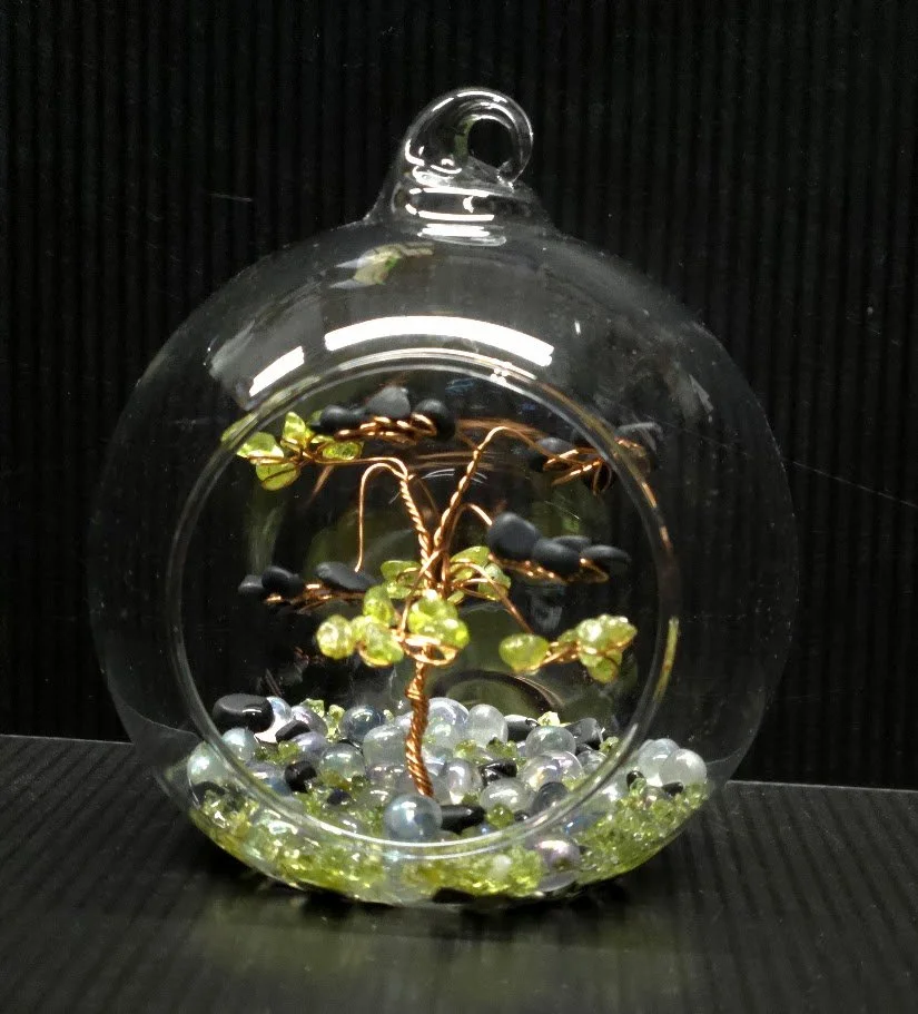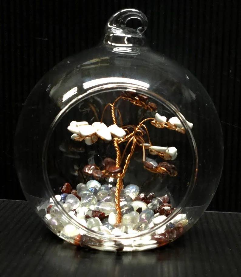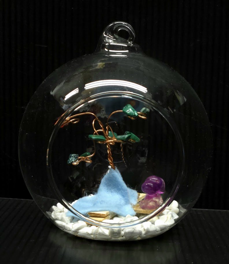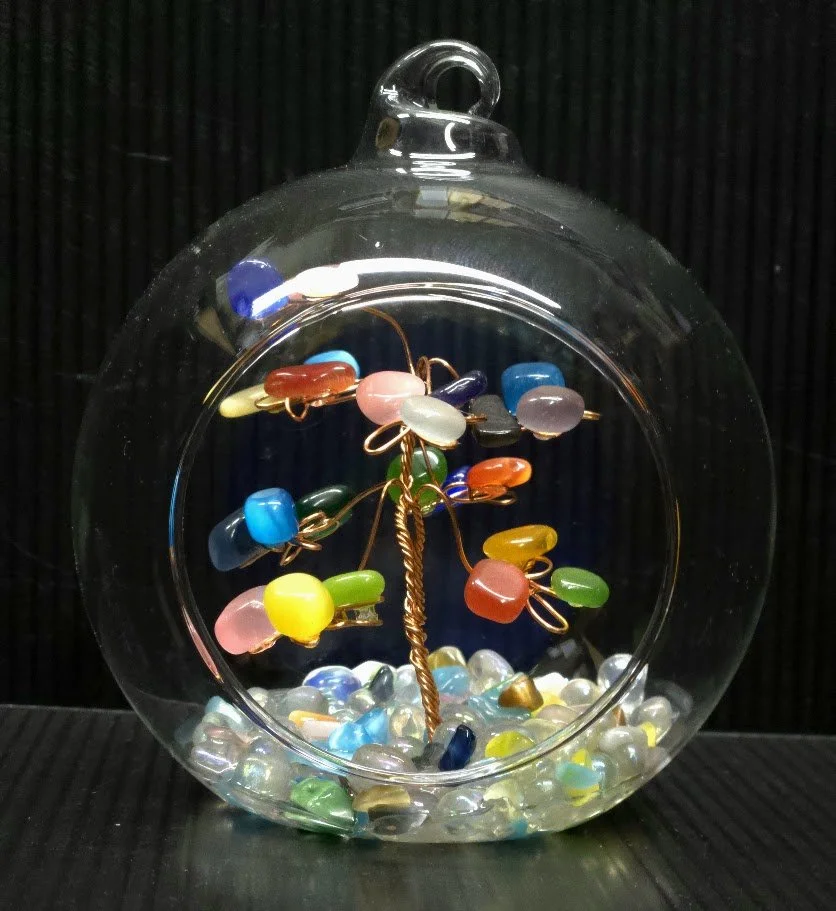 Suncatcher or Christmas Ornament made of glass and mixed with Aura Quartz in the base.